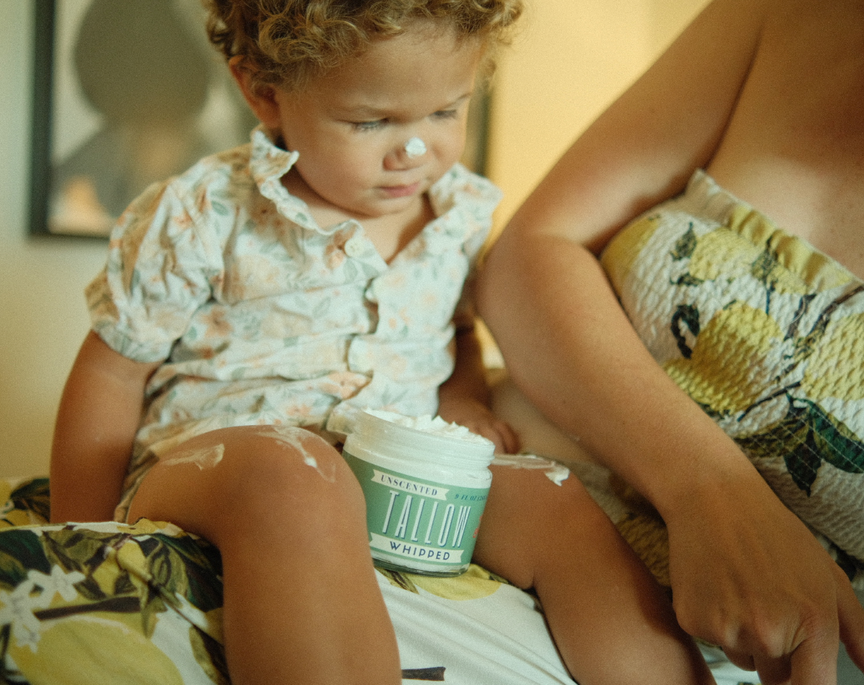 Even oily or acne-prone skin benefits from tallow. When skin is stripped of natural oils, it overproduces sebum. Using our whipped tallow helps balance moisture, soothe irritation, and promote a healthy glow.